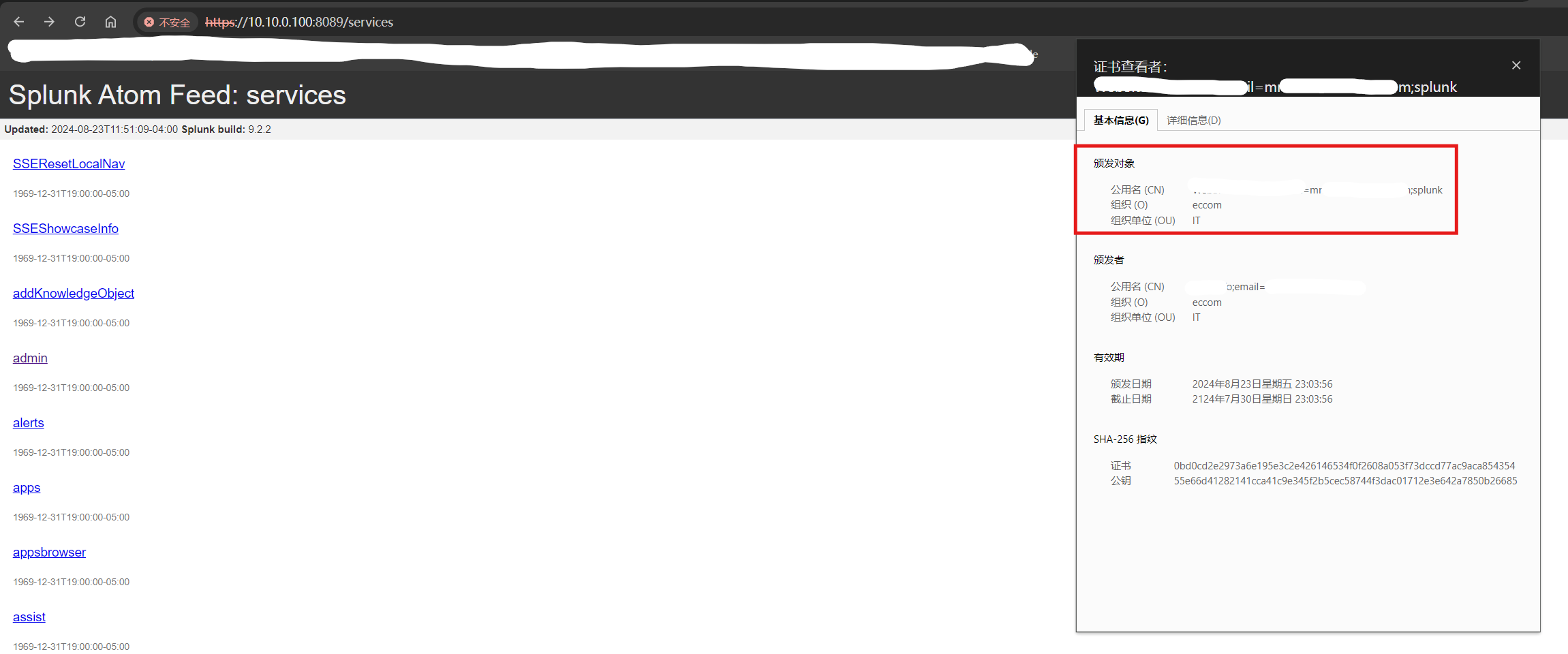 Splunk默认的自签证书为3年,证书过期后会导致KVStore存储无法使用。为了不每三年重启一次Splunk,解决证书的问题。故签发一个100年的自签证书。