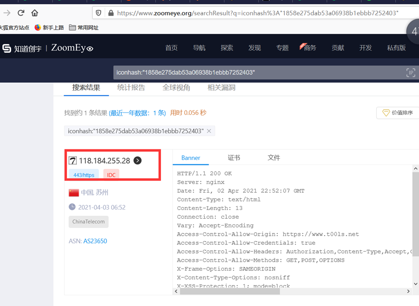 找到目标服务器 IP 段后,可以直接进行暴力匹配 ,使用zmap、masscan 扫描 HTTP banner,然后匹配到目标域名的相同 banner