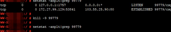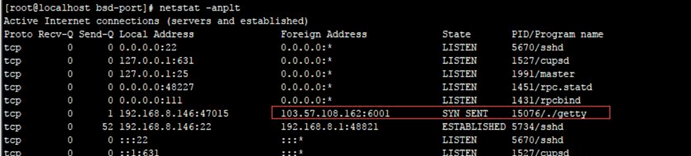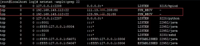 登录服务器查看端口、进程,并未发现发现服务器异常,但是当多次刷新端口连接时,可以查看该连接。 有时候一直刷这条命令好十几次才会出现,像这种的短连接极难捕捉到对应的进程和源文件。